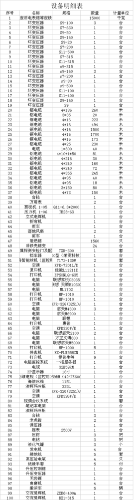 附:設(shè)備明細(xì)表(僅供參考)
